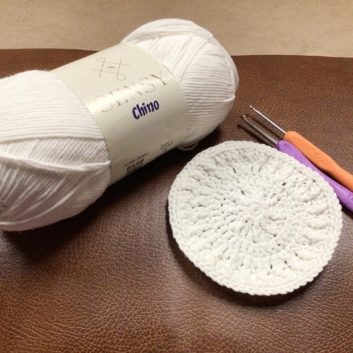 This is a nice cotton/acrylic blend yarn. It is soft and easy to work with. I made a coaster with it to try it out. I started with a 2.25 mm hook, but that seemed a little small and seemed to split the yarn a little. The 4mm hook works better with it. The coaster made from the yarn has a nice soft feel.